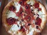 Pepperoni, sausage, beef, ham, bacon, mozzarella & tomato sauce.